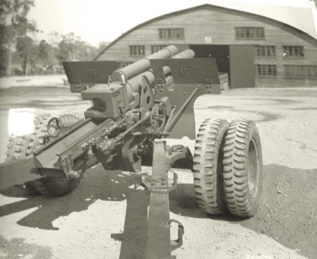 105mm M2A1 Howitzer, Coopers Plains, Brisbane, Queensland, Australia. 1943. Photo: Isaacs.